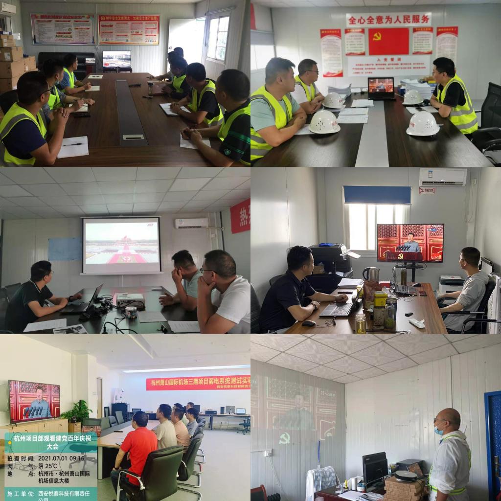 7月1日上午8时,悦泰公司党支部组织全体党员和干部员工,准时在公司西港商务办公区、研发中心以及西安、杭州、榆林机场项目部等不同场所,全程收听收看庆祝中国共产党成立100周年大会,认真学习习近平总书记在大会上发表的重要讲话。